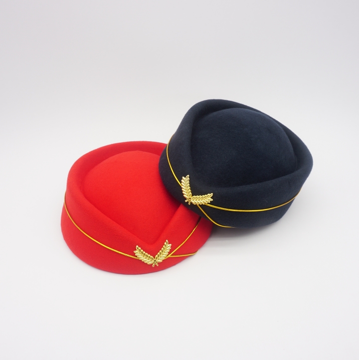 从设计层面来看,空姐帽子的造型绝非随意为之,而是依据人体工程学精心打造。它贴合头部曲线,顶部微微隆起,与头顶弧度完美契合;帽檐宽度和弧度恰到好处,环绕额头,形成稳定的接触面。材质上,内部选用柔软且有弹性的内衬,像海绵或特殊纤维织物,能温柔包裹头部,随头部动作自动调整,始终紧密贴合,即便频繁转头也不易滑落。