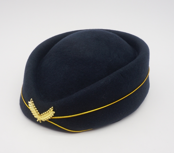 国内空姐帽以“端庄规范、统一标准”为核心,凸显民航服务的专业性。主流帽型为贝雷帽、简约小礼帽,线条挺括,与制服完美契合,展现空姐优雅形象。色彩多采用藏蓝、墨黑等经典色系,搭配航司LOGO刺绣,强化品牌辨识度。部分航司融入中式元素,如山航飞行帽帽徽蕴含“天圆地方”美学,南航“小红帽”的木棉花刺绣呼应广州地域特色。